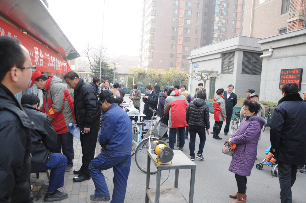 真武家園項(xiàng)目部副經(jīng)理付志春親自帶領(lǐng)客服員工,和居委會(huì)主任趙建成一同到業(yè)主家中,幫助業(yè)主擦玻璃、收拾屋內(nèi)衛(wèi)生;活動(dòng)中維保部李文利和張新遠(yuǎn)為業(yè)主磨刀70余把,修理自行車6輛,為自行車打氣7輛,同時(shí)對(duì)小區(qū)綠地?zé)燁^、雜物等進(jìn)行了清理。建設(shè)銀行的工作人員耐心的為業(yè)主介紹人民幣的真?zhèn)伪孀R(shí)方法,免費(fèi)提供證件復(fù)印,吸引了不少老年業(yè)主的注意力。同時(shí)居委會(huì)還聯(lián)系社區(qū)衛(wèi)生服務(wù)站人員,在現(xiàn)場(chǎng)為業(yè)主提供測(cè)量血壓、健康咨詢、為老年人理發(fā)等服務(wù)。