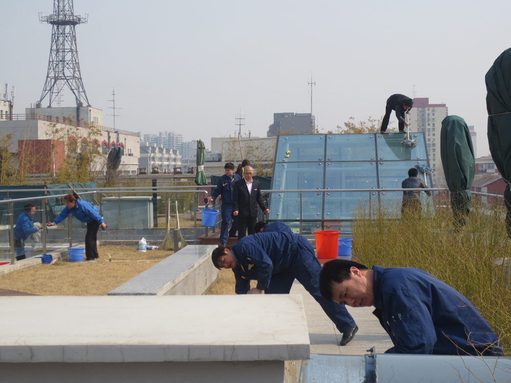 3月5日是偉大領(lǐng)袖毛澤東主席題詞“向雷鋒同志學(xué)習(xí)”52周年紀(jì)念日。為弘揚雷鋒精神,并為客戶提供一個整潔、優(yōu)美、舒適、休閑的環(huán)境,地圖出版集團項目部積極響應(yīng)公司號召,組織黨、團員及員工利用中午休息時間,舉辦了“學(xué)雷鋒”活動——清潔大廈五層平臺花園。