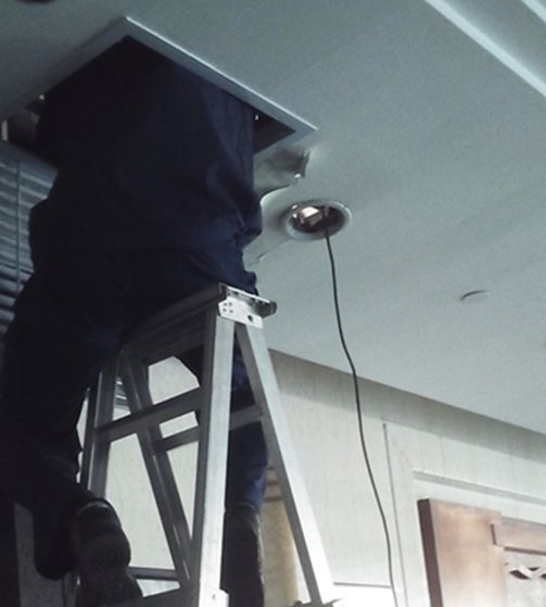 2015年10月7日還是國(guó)慶假期,下午16點(diǎn)00分,項(xiàng)目部值班經(jīng)理李根接報(bào):1層公共檢索大廳外側(cè)頂棚有漏水現(xiàn)象。李根立即趕赴現(xiàn)場(chǎng)查看情況,同時(shí)聯(lián)系空調(diào)運(yùn)行主管黃長(zhǎng)青和空調(diào)機(jī)房運(yùn)行值班員。黃長(zhǎng)青指示空調(diào)機(jī)房值班員李里:對(duì)大廈中央空調(diào)系統(tǒng)實(shí)施泄水操作,以降低管道壓力。此時(shí)項(xiàng)目部空調(diào)運(yùn)行專業(yè)員工孟克儉、維修隊(duì)員工任文超已在現(xiàn)場(chǎng)實(shí)施處置,而空調(diào)運(yùn)行專業(yè)員工王天照當(dāng)日休息,得知消息后主動(dòng)前往現(xiàn)場(chǎng)支援。