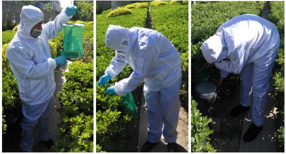 根據(jù)蒼蠅生長習性,在4月中旬新生世代開始出現(xiàn)孳生繁殖,而位于央視新址主樓南側(cè)、北側(cè)均有建筑施工,西側(cè)緊鄰地鐵站,人員流動大、早餐點較多,給蒼蠅孳生提供有利生存條件和棲息場所。由于南、北廣場進入主樓大門與旋轉(zhuǎn)門晝夜開啟未安裝風幕機,內(nèi)外環(huán)境未隔絕。導致蒼蠅從南北門進入主樓,為防止蒼蠅傳播疾病影響業(yè)主工作生活,央視項目部消殺組采用“籠捕法”在綠植內(nèi)懸掛捕蠅籠,控制其孳生源頭以防止蒼蠅從大門進入主樓密度。蒼蠅喜歡“聞香逐臭”,針對于此,有害生物防制專業(yè)分別在布放為南、北、西側(cè)綠籬重點區(qū)域位置加密布放捕蠅籠。懸掛原則將捕蠅籠懸掛于陰涼、避風、隱蔽處與周圍環(huán)境一致,既不影響整體環(huán)境美觀又能高效捕獲蒼蠅,從而減少蒼蠅進入主樓的密度。
