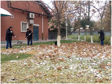 霜降過(guò)后,氣溫逐漸下降,綠化苗木開(kāi)始落葉,陸續(xù)進(jìn)入休眠期。為了做好冬季園林綠化的管護(hù)工作,嚴(yán)格落實(shí)防火等安全措施,排除各類安全隱患。安排各項(xiàng)目值班人員加強(qiáng)巡查維護(hù),防火。每周定時(shí)集中清理園區(qū)落葉,及時(shí)進(jìn)行綠化垃圾清運(yùn),減少安全隱患。