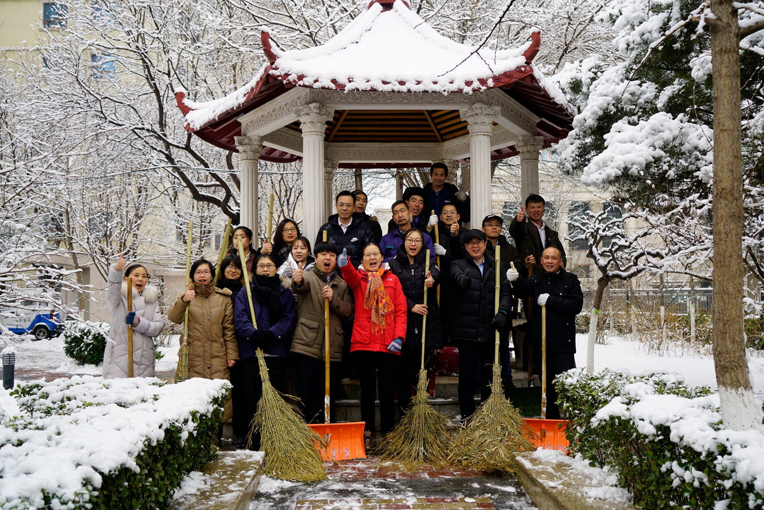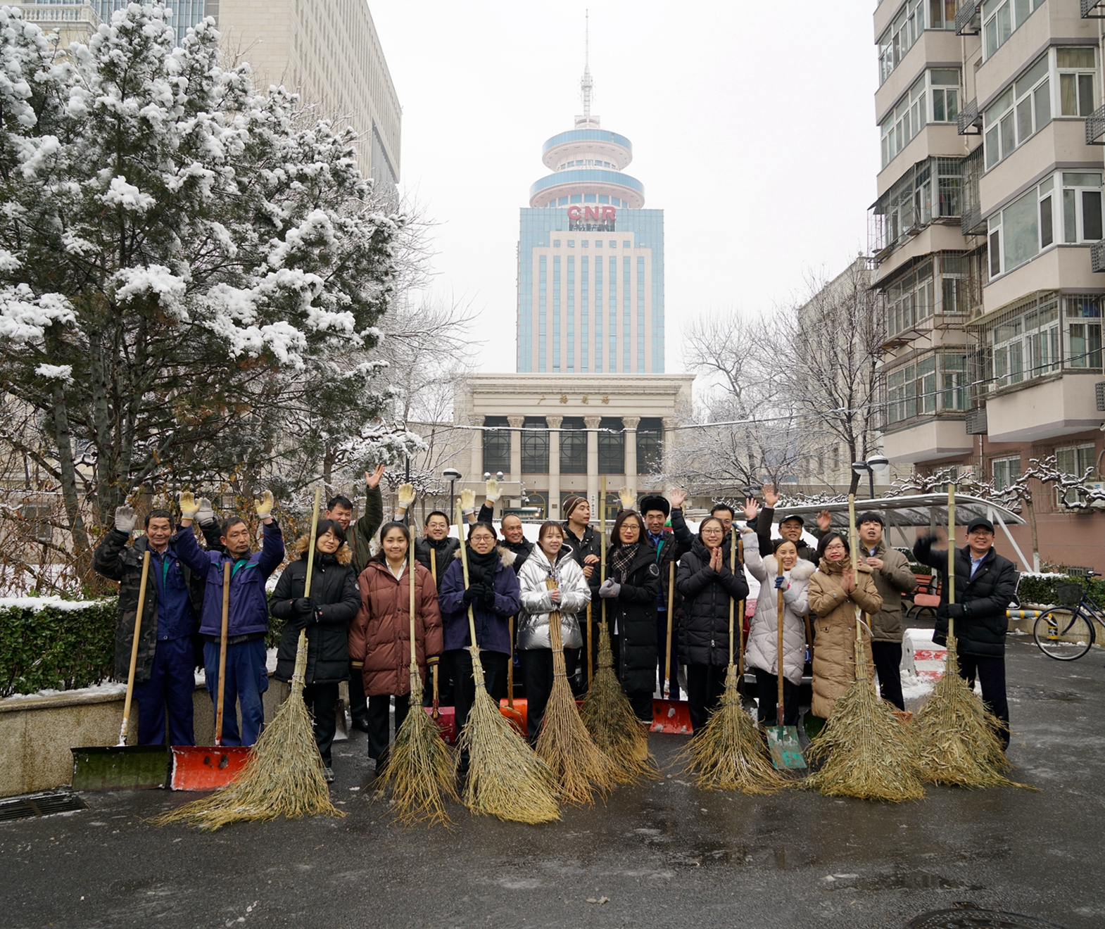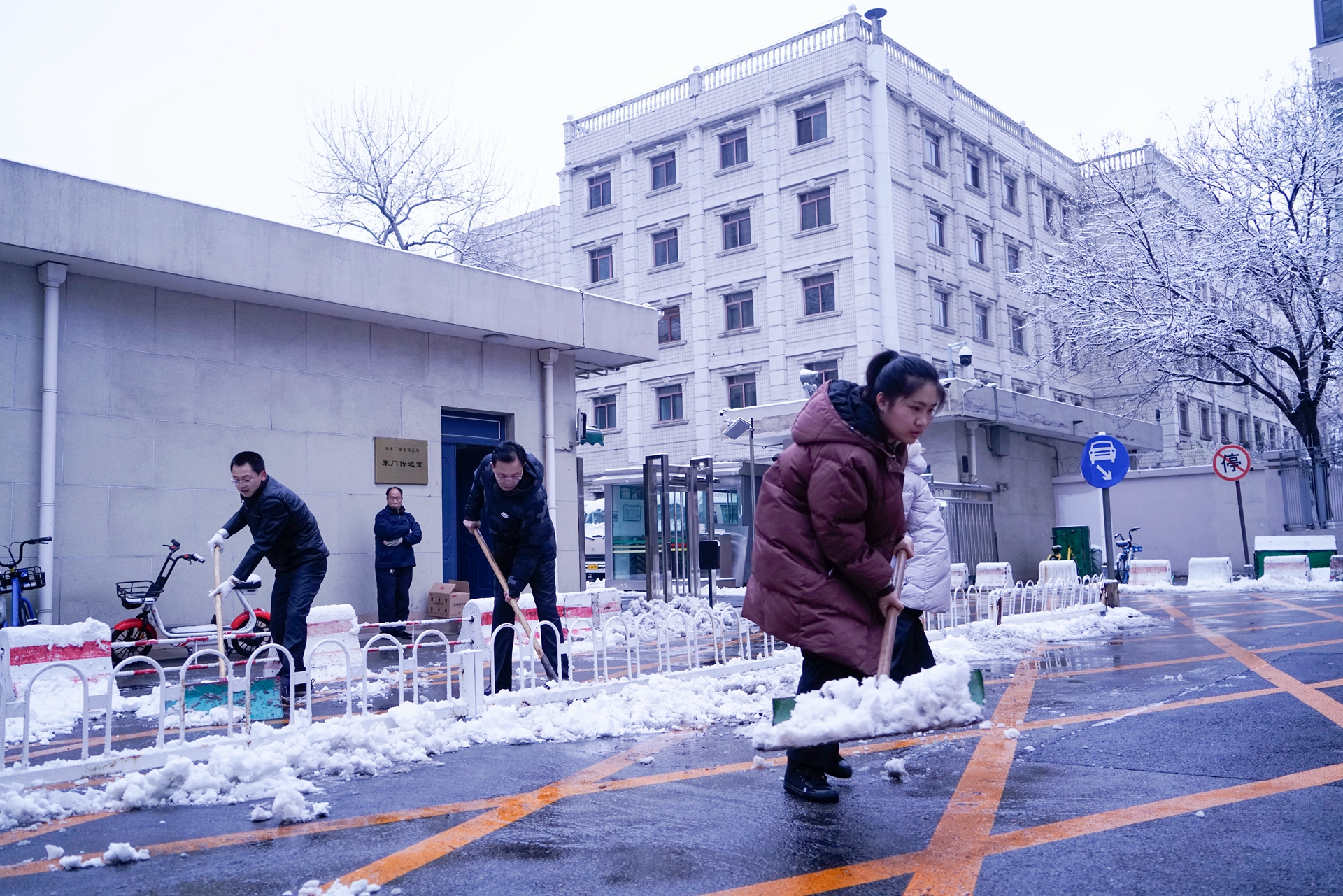 1月5日晚間北京迎來了新年的初雪,一夜的降雪后,整個京城銀裝素裹,但也給大家的出行帶來了不便。公司在京各項目部啟動應(yīng)急預(yù)案,安排各項目值班人員用雪鏟等掃雪。夜里11點(diǎn),央視復(fù)興路部值班人員組織員工迎著大雪冒著嚴(yán)寒進(jìn)行園區(qū)積雪清掃,大家不畏嚴(yán)寒,不怕累,個個干得滿頭大汗,熱火朝天,現(xiàn)場一派繁忙景象,他們忙碌的身影伴隨著美麗的雪景,形成了一道獨(dú)特靚麗的風(fēng)景線,充分展現(xiàn)了中廣物業(yè)員工的風(fēng)采。