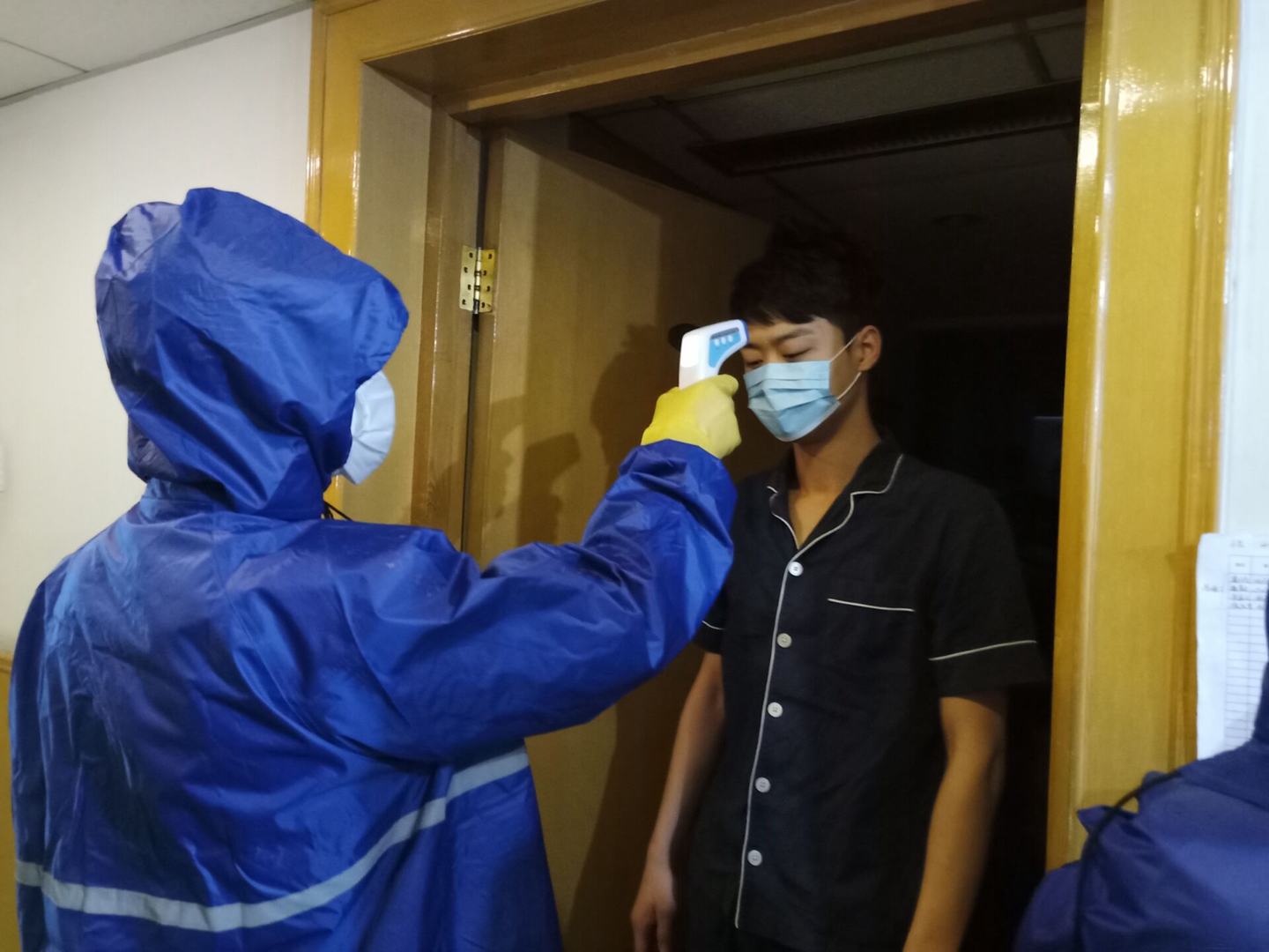 多措并舉,積極落實(shí)防控工作。提升員工自我保護(hù)意識(shí),引導(dǎo)員工注意保持良好個(gè)人衛(wèi)生習(xí)慣,所有上崗人員必須佩戴口罩。加強(qiáng)公共區(qū)域及客房的消毒力度,安排專(zhuān)人每天對(duì)南、北樓客用房間、辦公區(qū)域進(jìn)行一次全面徹底消毒,每4小時(shí)對(duì)公共區(qū)域、電梯間和衛(wèi)生間消毒1次,并在顯著區(qū)域公示消毒記錄;在大門(mén)崗、南樓前臺(tái)安排24小時(shí)專(zhuān)人值守,使用紅外線體溫監(jiān)測(cè)儀對(duì)所有進(jìn)入人員進(jìn)行測(cè)溫,確認(rèn)體溫正常并做好記錄后,方可進(jìn)入。按照要求暫停集中用餐,職工餐廳實(shí)行分餐制(以盒飯形式提供),由各專(zhuān)業(yè)安排專(zhuān)人統(tǒng)一領(lǐng)取;北樓宿舍實(shí)行宿舍卡管理,住宿員工一人一卡憑卡進(jìn)入宿舍,禁止非住宿人員入內(nèi),宿舍夜間一律不得出入。