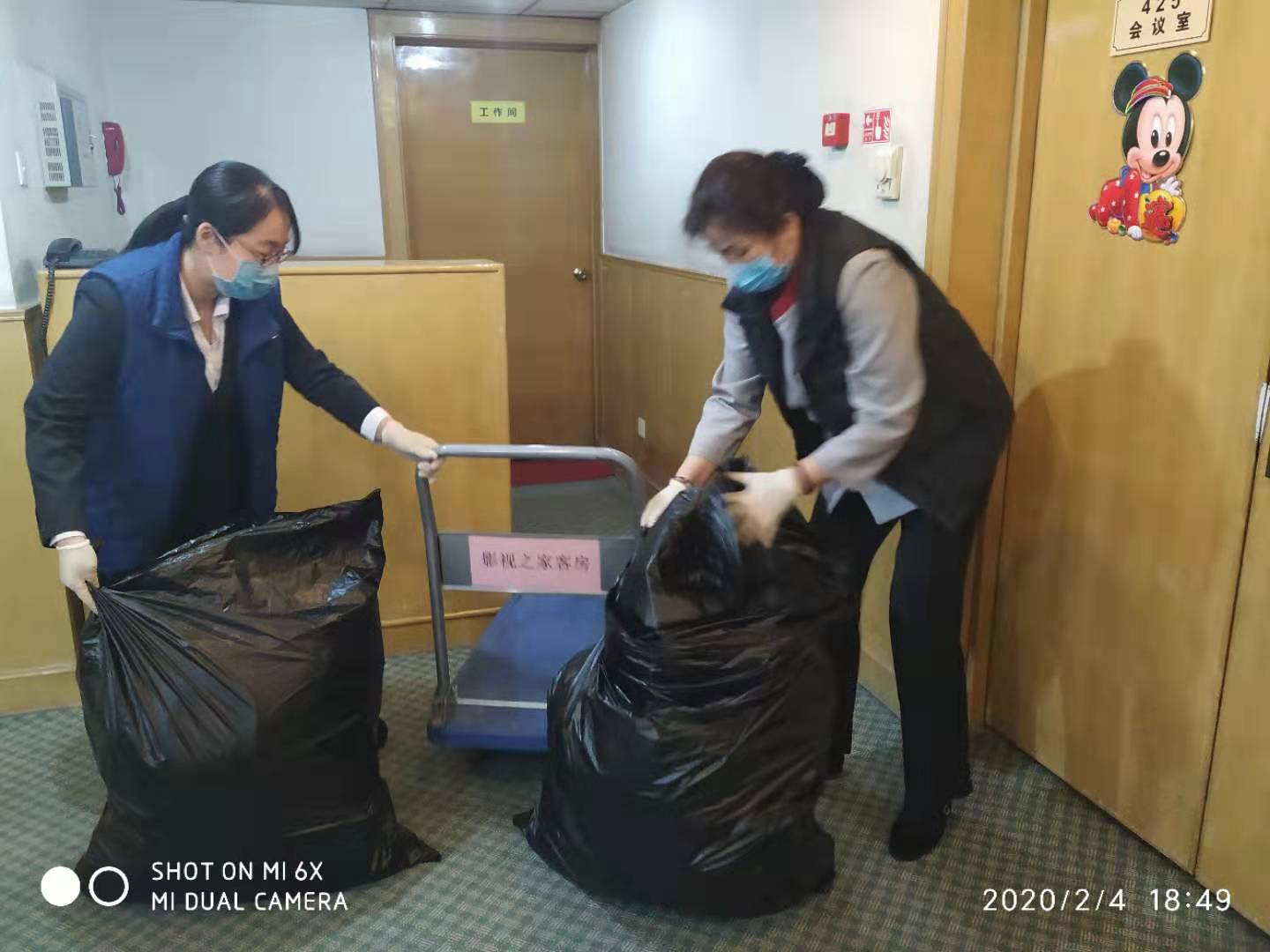 在接到中央廣播電視總臺(tái)工作人員將入駐影視之家集中辦公的通知后,影視之家項(xiàng)目部第一時(shí)間組織人員對(duì)南樓三層房間清理、消毒,并協(xié)調(diào)已入駐人員調(diào)整房間便于騰空整層。僅用了不到一天的時(shí)間就完成了南樓三層所有房間準(zhǔn)備工作。在防疫期間,項(xiàng)目部每天安排專(zhuān)人負(fù)責(zé)清運(yùn)生活垃圾,提供網(wǎng)絡(luò)維護(hù)服務(wù),并在工作人員外出執(zhí)行任務(wù)期間,對(duì)每間房間進(jìn)行全方位的殺菌消毒,協(xié)助工作人員對(duì)外出車(chē)輛進(jìn)行全面消毒,竭盡全力為總臺(tái)新聞中心工作人員提供安全、干凈的環(huán)境。