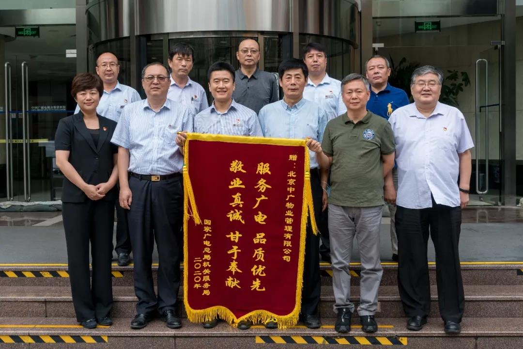 2020年8月21日,在音像資料館108會議室召開會議,公司股東方國家廣電總局機關服務局副局長阮波出席會議并發(fā)表重要講話,向中廣物業(yè)公司贈送“服務廣電、品質優(yōu)先、敬業(yè)真誠、甘于奉獻”錦旗。國家廣電總局機關服務局財務處處長和慶芳,國家廣電總局機關服務局物業(yè)管理部副處長張穗,國家廣電總局機關服務局物業(yè)管理部辦公室主任孫寶雪,中廣物業(yè)公司總經理崔立新及公司領導班子等成員參加會議。