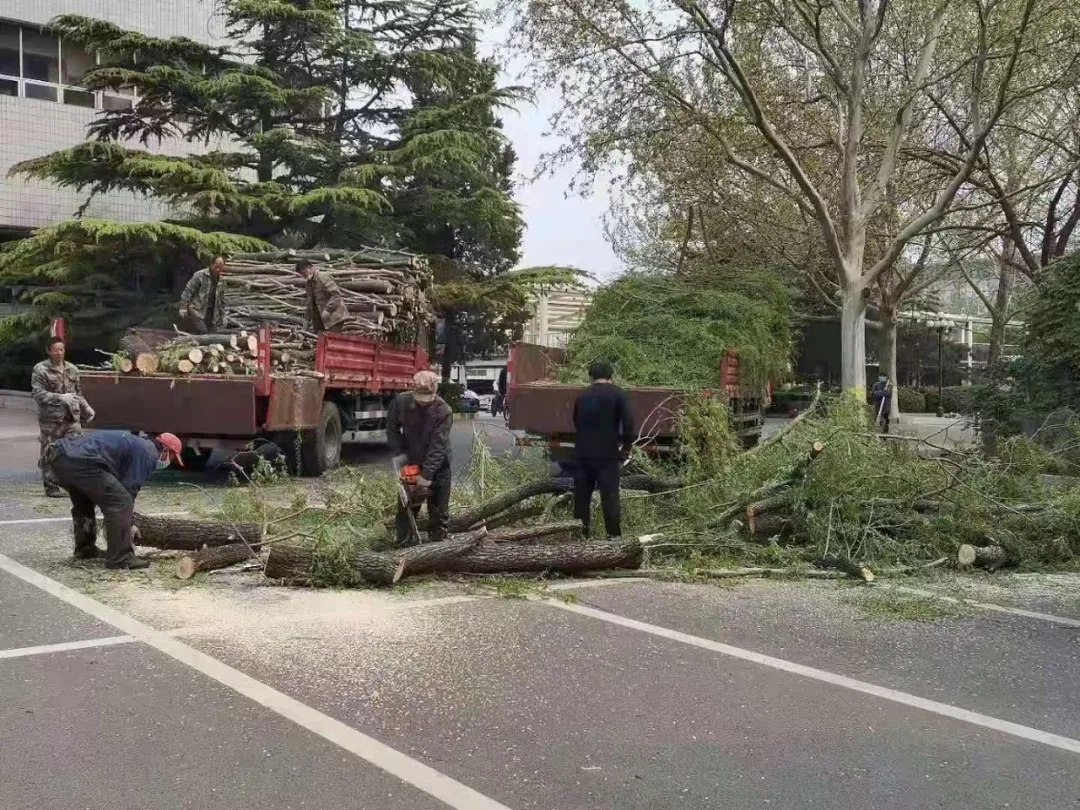 為防范極端天氣可能引發(fā)的樹(shù)木倒伏、枯枝掉落等情況發(fā)生,給過(guò)往行人和車(chē)輛帶來(lái)安全隱患,園林綠化子公司、復(fù)興路項(xiàng)目部、物資部團(tuán)結(jié)協(xié)作,利用周末人員較少時(shí)段,組織專(zhuān)業(yè)人員對(duì)總臺(tái)復(fù)興路辦公區(qū)內(nèi)樹(shù)木進(jìn)行修剪。公司領(lǐng)導(dǎo)高度重視,多次深入實(shí)地察勘,并作現(xiàn)場(chǎng)指導(dǎo)。園林綠化子公司、復(fù)興路項(xiàng)目部、物資部全程跟進(jìn),積極與總臺(tái)相關(guān)部門(mén)溝通協(xié)調(diào),提前清理作業(yè)區(qū)域內(nèi)車(chē)輛,調(diào)集安保人員維護(hù)現(xiàn)場(chǎng)秩序。作業(yè)結(jié)束后,及時(shí)組織保潔人員清運(yùn)修剪樹(shù)枝,竭力維護(hù)總臺(tái)辦公區(qū)內(nèi)園林綠化整潔美觀,保障總臺(tái)工作人員日常出行安全。