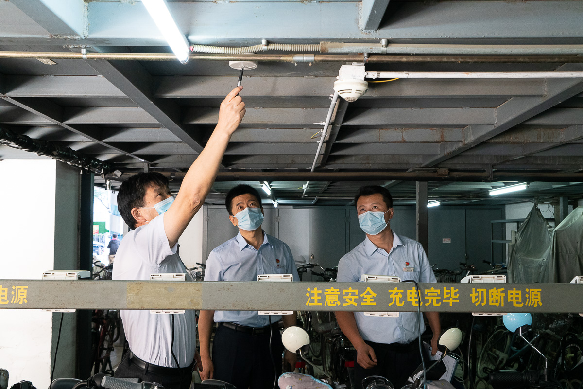 2021年9月20日通州區(qū)某小區(qū)因電動(dòng)自行車室內(nèi)充電引發(fā)火災(zāi)事故,導(dǎo)致5名居民死亡。9月22日,公司總經(jīng)理、安委會(huì)主任崔立新帶隊(duì),對(duì)公司服務(wù)的總臺(tái)音像資料館、總臺(tái)影視之家、央視住宅小區(qū)和廣電總局小區(qū)等項(xiàng)目開展電動(dòng)自行車充電安全專項(xiàng)檢查工作,公司總經(jīng)理助理何軍、技術(shù)總監(jiān)李長青、品質(zhì)管理部經(jīng)理兼安委會(huì)副主任劉蕾、技術(shù)管理部主任呂全軍以及相關(guān)項(xiàng)目部負(fù)責(zé)人陪同檢查。