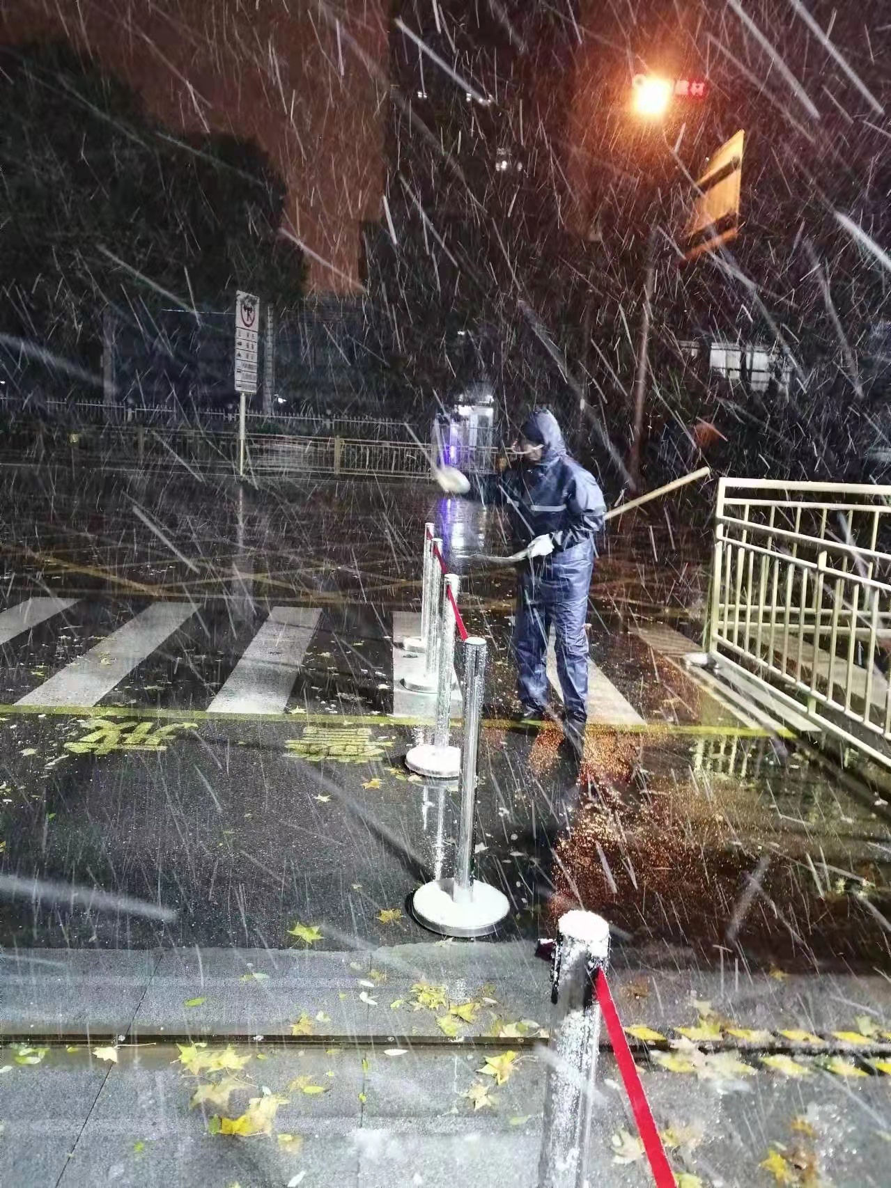 11月6日傍晚至7日,北京受強(qiáng)冷空氣影響,立冬逢初雪,大地悄然間穿上皚皚銀裝,地面濕滑、道路結(jié)冰,給來(lái)往人員和車輛的出行帶來(lái)不便。北京中廣物業(yè)管理有限公司在京各項(xiàng)目以雪為令,迎風(fēng)雪、頂嚴(yán)寒,積極有序開(kāi)展掃雪除冰工作,消除安全隱患。