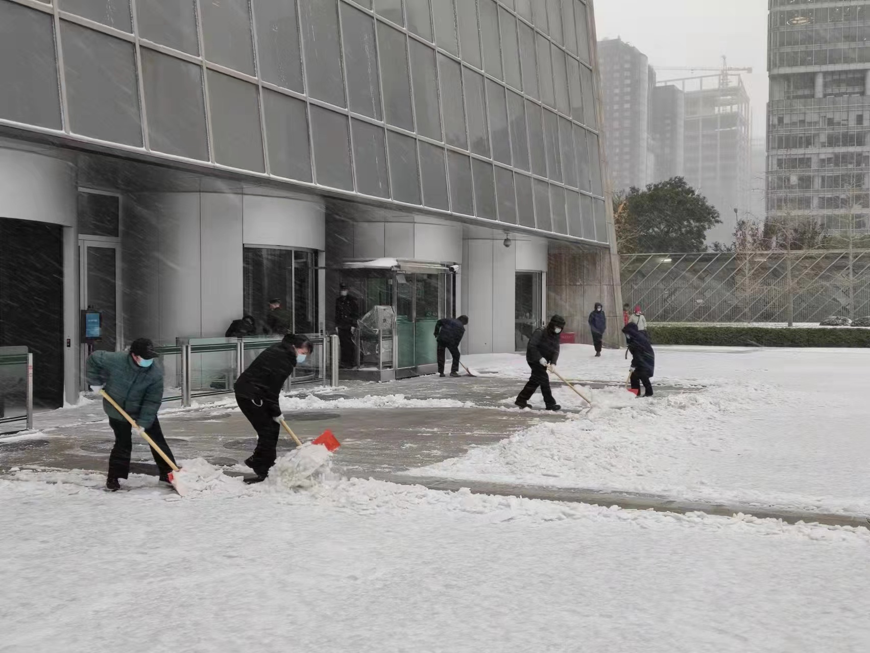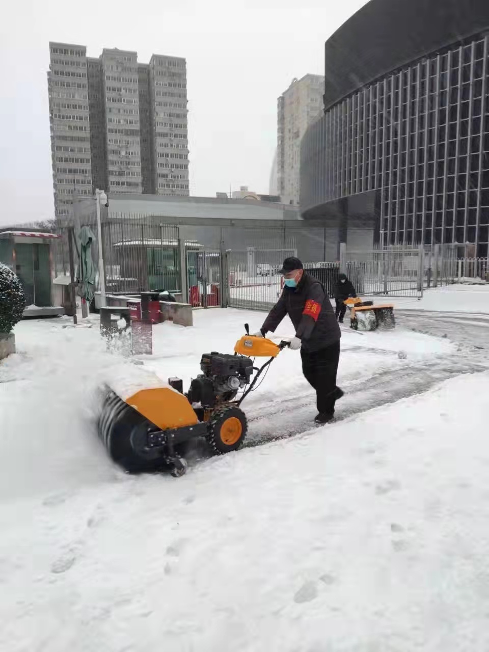 為最大限度地減少降雪天氣對(duì)業(yè)主出行造成的影響,公司安委會(huì)密切關(guān)注氣象預(yù)警,第一時(shí)間轉(zhuǎn)發(fā)寒潮、大風(fēng)、暴雪、道路結(jié)冰黃色預(yù)警信息,在京各項(xiàng)目立即啟動(dòng)雪天應(yīng)急預(yù)案,積極投入到掃雪除冰工作中,在主要通道噴灑融雪劑,樓門入口鋪設(shè)防滑墊,設(shè)立“小心地滑”提示牌,出動(dòng)三百余人次,利用推雪板等各種掃雪工具進(jìn)行清理。