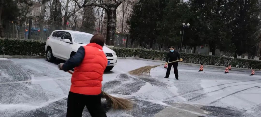 面對大范圍持續(xù)性降雪天氣,北京中廣物業(yè)管理有限公司在京各項目立即啟動雪天應(yīng)急預(yù)案,加強物資儲備,排查設(shè)備設(shè)施,各專業(yè)員工積極投入掃雪鏟冰工作,及時清除安全隱患。大家相互配合,你鍬我掃,噴灑融雪劑,設(shè)立提示牌,中廣人用一顆對總局、總臺服務(wù)炙熱的初心將寒冰融化,將凍雪拂去,在凜冽的寒風(fēng)中靜候春歸。