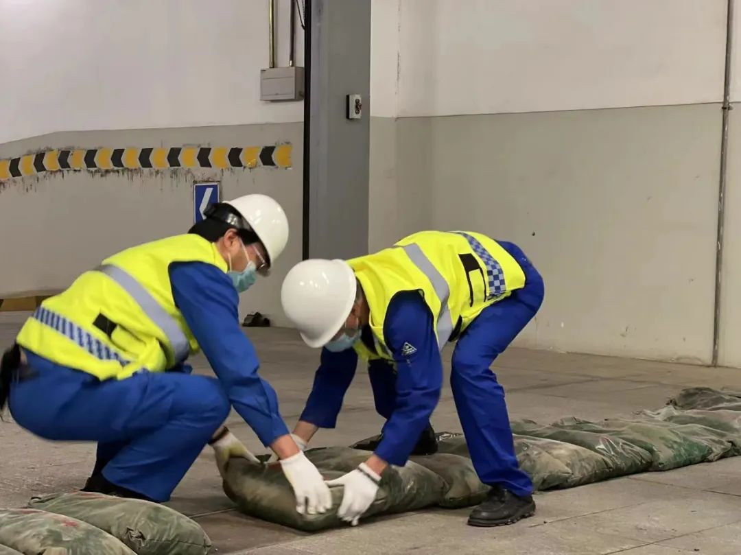 根據(jù)防汛工作會議部署7月14日上午9時(shí),光華路辦公區(qū)防汛演練在主樓B2車道入口區(qū)域如期舉行。根據(jù)防汛方案,此次演練由物業(yè)管理處、保衛(wèi)處、動力處聯(lián)合舉行進(jìn)行。由于B2車道入口坡道傾斜角度大,大雨時(shí)極易形成雨水倒灌。需要防汛人員第一時(shí)間就位,同時(shí)進(jìn)行沙袋封堵,電力連接,啟動水泵排水等多個(gè)部門配合。隨著總指揮“險(xiǎn)情信息”的發(fā)布,項(xiàng)目部防汛人員立即來到現(xiàn)場,在2分鐘內(nèi)快速完成上下兩處入口處沙袋的封堵和鋪設(shè)水帶任務(wù)。與此同時(shí)央視瑞安給排水小組人員也迅速響應(yīng),配合完成送電、啟動抽水泵等相關(guān)工作,防汛搶險(xiǎn)一氣呵成。