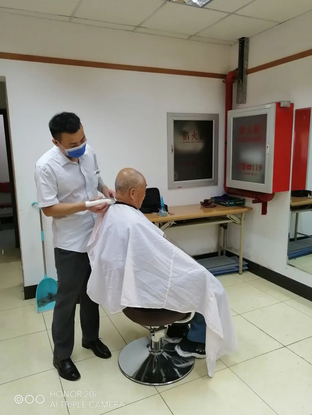 9月8日一大早,老同志們陸續(xù)來(lái)到總臺(tái)五棵松社區(qū)活動(dòng)站排隊(duì)等候理發(fā),五棵松項(xiàng)目嚴(yán)格按照疫情防控要求,做好掃碼登記及現(xiàn)場(chǎng)的消毒工作。83歲的張阿姨笑著說(shuō):“這段時(shí)間不能理發(fā)太不方便了,去外面理發(fā)也不放心?!?0歲的王大爺原本凌亂的頭發(fā)經(jīng)過(guò)公司理發(fā)師傅的精心修剪,立馬變得整齊利落,整個(gè)人看上去也顯得精神了許多,頭發(fā)理好后吳大爺看著鏡子里的自己,露出了滿意的笑容。周圍的老同志們也紛紛豎起了大拇指。