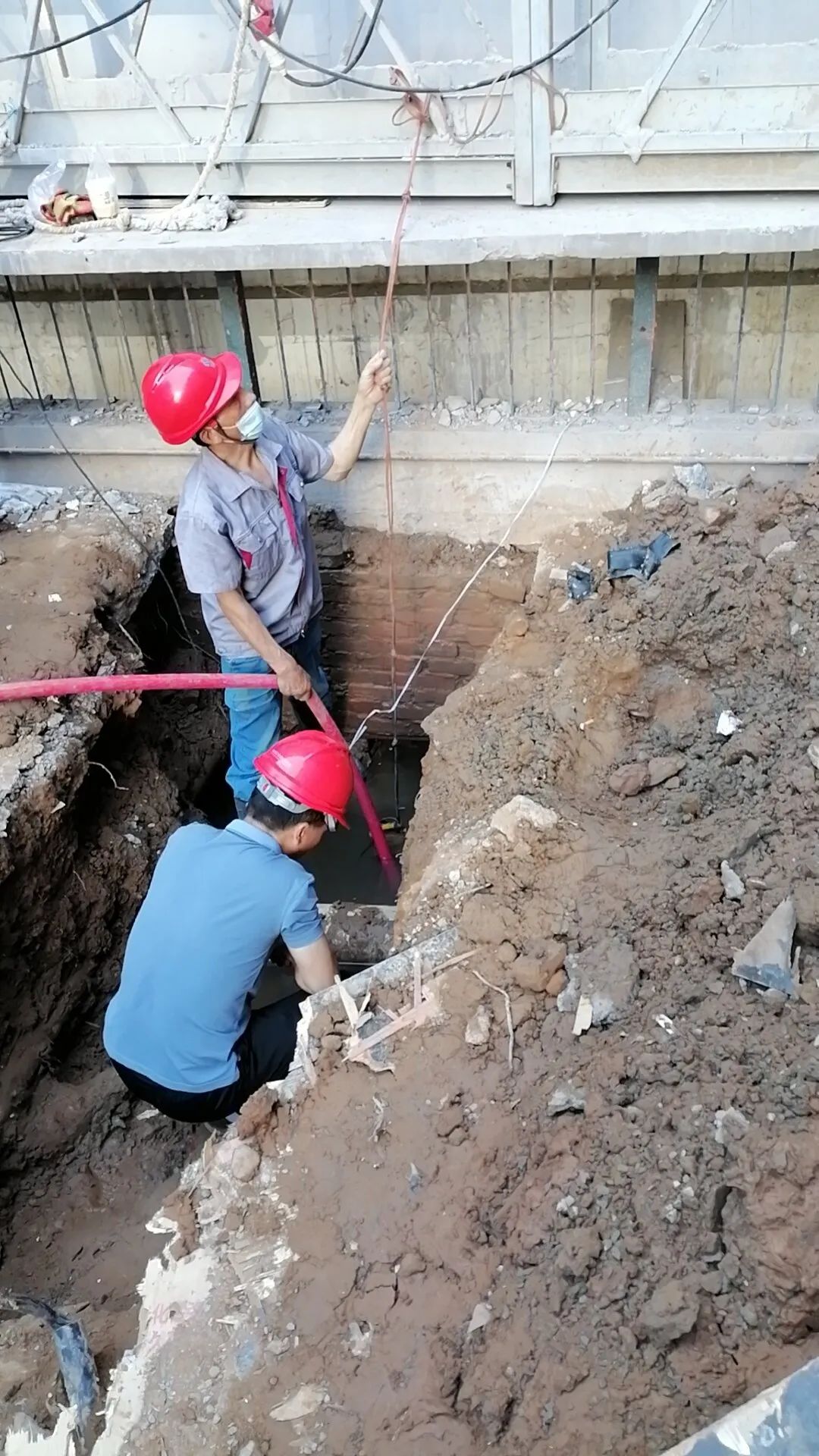公司相關(guān)部門(mén)領(lǐng)導(dǎo)和專(zhuān)業(yè)技術(shù)人員迅速趕赴現(xiàn)場(chǎng),經(jīng)專(zhuān)業(yè)判斷,由于漏點(diǎn)緊鄰?fù)鈮?,該段管道老化?yán)重,涉及鑄鐵管和普通鋼管的連接,同時(shí)涉及外墻樓體防水,多種專(zhuān)業(yè),施工技術(shù)含量較高且工程量較大,為不影響南樓賓客正常用水,決定將整段管道進(jìn)行更換。物資部經(jīng)理石宇迅速聯(lián)系專(zhuān)業(yè)施工單位連夜進(jìn)場(chǎng)搶修,并到現(xiàn)場(chǎng)與項(xiàng)目部負(fù)責(zé)人現(xiàn)場(chǎng)指揮,工程專(zhuān)業(yè)主管們和技術(shù)人員全程傾力配合作業(yè),施工至30日凌晨1點(diǎn),才挖出施工作業(yè)面。30日一早,公司技術(shù)顧問(wèn)李長(zhǎng)青、物資部經(jīng)理石宇、技術(shù)管理部經(jīng)理呂全軍又第一時(shí)間趕到現(xiàn)場(chǎng),與項(xiàng)目部并肩戰(zhàn)斗,科學(xué)調(diào)配作業(yè)時(shí)間和專(zhuān)業(yè)人員,直至次日凌晨2點(diǎn)恢復(fù)正常供水。在施工過(guò)程中,由于有些作業(yè)時(shí)間在夜間進(jìn)行以及供水需求,得到了央視住宅項(xiàng)目部經(jīng)理田穎和經(jīng)理助理王麗的大力支持。公司領(lǐng)導(dǎo)于當(dāng)晚22點(diǎn)趕到現(xiàn)場(chǎng)看望一線員工,并親自指揮督導(dǎo)作業(yè)直至確認(rèn)管道能正常供水。當(dāng)日市氣象局報(bào)高溫橙色預(yù)警,甲方領(lǐng)導(dǎo)還親自購(gòu)置了西瓜,對(duì)現(xiàn)場(chǎng)作業(yè)人員進(jìn)行慰問(wèn)。